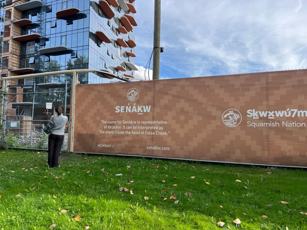 This past week, I was in Vancouver for the annual CREW conference, and I had the privilege of taking a tour of the Squamish Nation’s new real estate development, Sen̓áḵw. The name was taken from the name of the village once located in that part of Vancouver, located at the head of False Creek. Now, they are turning it into several high-rise towers aimed at providing housing for tribe members and addressing part of Vancouver’s housing crisis.