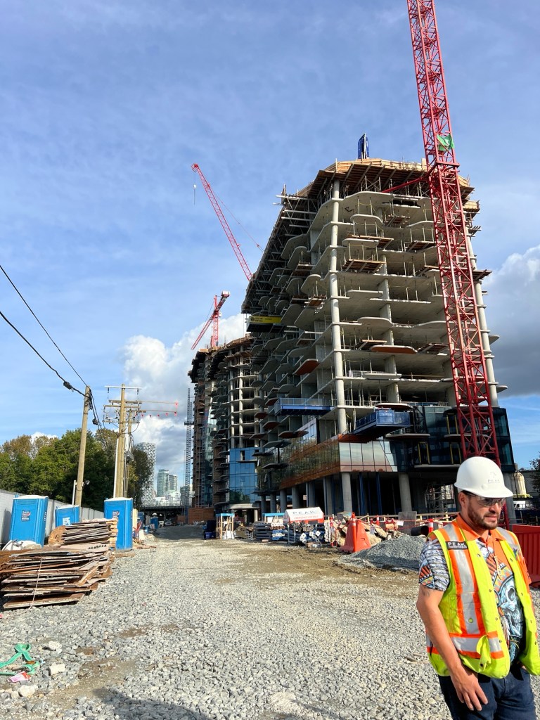 Thanks to Nch’kay, we were granted a tour of the grounds. I was blown away by how much building had been done, especially with the limited amount of land available. The sliver of land is located directly next to the Burrard Street Bridge. However, with the development being transit focused, they are making the most of it. While there only be parking available for about 14% of the total occupancy, there will be ample bicycle parking (4800 spots). In fact, it is possible that most transit in and out of Sen̓áḵw will be done on foot or by bike.